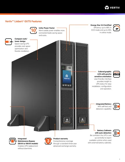 Vertiv Gxt5-10kmvrt6uxln 10000va/10000W Online Interactive High Frequency Two-Phase Input/Two-Phase Output Rack (6U) /Tower UPS (standard machine)